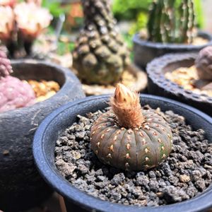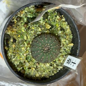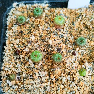 ①サボテン士童の蕾が膨らんできました🎵 ②リメ鉢に植えてある全体像です❗😊 ③ちょっと触ったら、蕾(だと思っていたもの)が取れてしまいました!😱 これは、またお花を咲かせないで、自家受粉して種子を作ったのか⁉😅 よく見ると、取れたところにまた次の蕾がついています🎵😃✨ 🏷️金曜日の蕾たち 付けさせてください🎶 ④蕾に見えたものを開いてみると、やっぱり種ができていました❗😆 この士童さん、わが家へ来てから1度も開花したことがありません!😔 最初は開花を見逃したのだと思いましたが、調べてみると開花しないで種子をつけることがよくあるそうです😌 ⑤2年前にできた種子を蒔いたものが、ようやく直径8mm位になりました❣️😃💕 生長がゆっくりなサボテンです☺