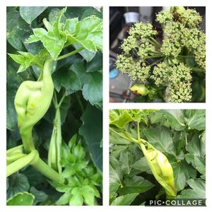 4年程前ウチの奥さんが欲しいと言い出し明日葉苗を10個植えました でも苦く美味しく食べられないから、 たまに若葉を干しお茶にするしかなく 良く育ち持て余している明日葉です 脇芽が伸び出し変な形をしたものが出来 その内の一株に花らしいものが見えます この明日葉を美味しく食べられる方法 なるべく油を使わずに利用するには? 教えて頂きたく思います