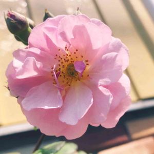 こんにちは☔️ コーネリアさん🌹 雨の中 杏ピンクの可愛いお花が咲きました 蕾が口紅みたい💄 15年程家にいてくれていますが シマトリネコの側でひっそりと咲いています💕 イギリス作出 小輪房咲き 返り咲き ほのかなムスクの香り NO3