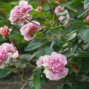 2投目〜🌹 コーネリアさんがチラホラ🌹💕 コーネリアさんの上に見える蕾達は、ポールズヒマラヤンムスクさん⁽⁽٩(๑˃̶͈̀ ᗨ ˂̶͈́)۶⁾⁾ カミキリ被害から2年目(*´艸`*) だいぶ復活です🌸🌹 ヨカッタ〜本当良かった🌹💕 今年はお花がたくさん見れそうです(*´艸`*) でもこれシュート1本なのですよね꒰꒪д꒪|||꒱ガーン ポールズさんは、ベイサル出にくいらしいので、しばらくこの1本かな?1本だけど凄い😂
