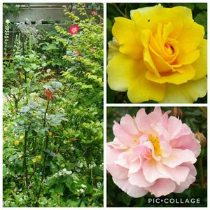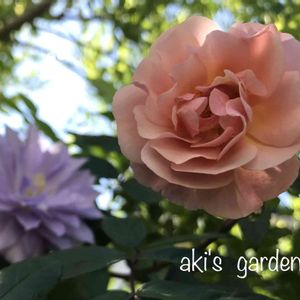 薔薇(コーネリア) クレマチス(ベルオブウォーキング) シマトネリコに絡ませて、華やかになってます✨