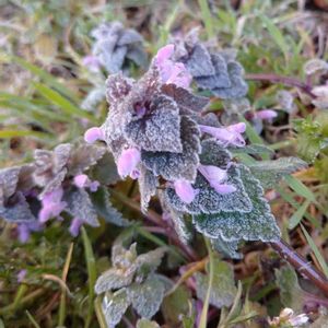 寒〰️い朝です❄️ 冷たい霜に耐えてるヒメオドリコソウ😢 がんばれー✊‼️