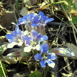 孫とお散歩中、林の中で見つけました😊 茎が1本だからフデリンドウであってますよね🎵 素敵な青💙