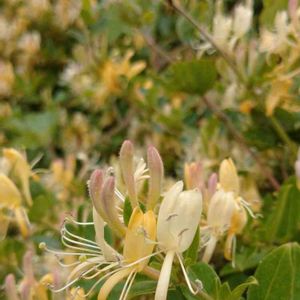 わんことお散歩🐕💨 一面の忍冬(スイカズラ) 遠くまで良い香り… なんと❗地面でも咲いちゃってるわぁ🎵