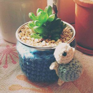 ぽこちゃんさんに作ってもらったシリーズ④💕 カメさんの小物入れ✨✨ 先日、植え替えたウンブラティコラさんのゼリーカップにピッタリ🎵 可愛さMAX😁