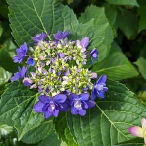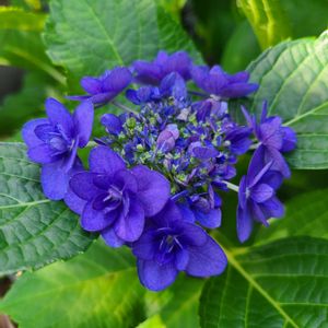 紫陽花 卑弥呼が咲きました。 青紫なのでしょうか、とても濃いです。