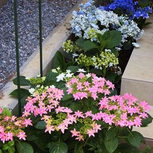 玄関横のアジサイスペース。 ダンスパーティーとウエディングドレスは、小さな苗を地植えしましたがしっかり咲いてきてくれてます。 万華鏡は昨年咲いている鉢植えを今年の春に地植えしました。この子は朝晩タップリ水をあげても萎れてきます。 あと、銀河と卑弥呼を植えたいなと思ってたら、昨日両方ともまだ良い状態のがお値打ち価格に! 迷わずお持ち帰りして、地植え予定地の土を整えて穴を掘って鉢ごと埋めてます。花が終わったら鉢から出す予定です。 バラがひと段落した頃華やかになってくれるのでいい感じ。