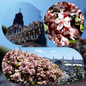 教会の垣根の中に毎年咲いている、この山盛りのお花は? yayaさま✨より 教えていただきました~ 「シャリンバイ」 ありがとうございました🥰