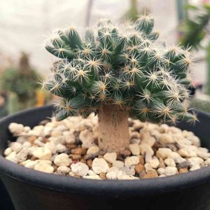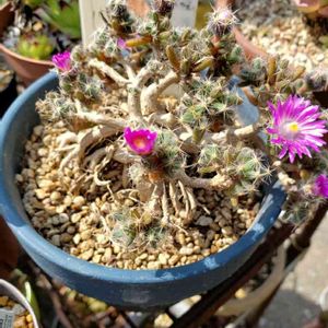 トリコディアデマ・デンサム 紫晃星 群生ポットで塊根が成長してきていたので、1本だけ別の鉢に植え替え 樹高5cmほどのミニミニ盆栽仕立て トリコディアデマは強いので管理が楽チン