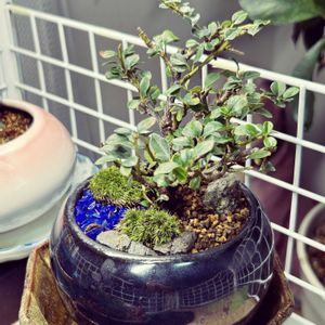 苔テラリウム初めて作りました! 初めての割には、綺麗にできたかと思います! 水色ぽい石を川に見立てみました! 熊は北海道行ったときのガチャガチャを活用🐻