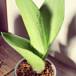 ダイソー産のサンスベリア ムーンシャインでいいのかな? 置き場所なのか‥外っ側の葉が緑色に‥ でも色合いがとってもかわいい。