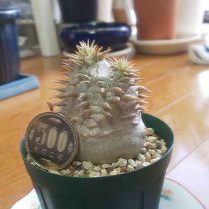 断水中のパキポディウム 上の方の葉はすべて落ち 葉のあった部分は わずかに盛り上がってきました✨ 急に老け込んだ印象🍀 12/11@自宅リビング だが可愛い