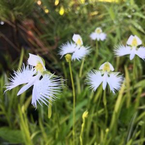 今日のお花🕊サギソウです。 余ったバルブを壊れた土鍋🍲や急須🫖に遊びで植え込んだ子達です。急須の注ぎ口から溢れた芽から花が咲いたら面白いと思いましたが、さすがに無理だったみたいです。理由は分からないけれどとにかく今年は本当によく咲いてくれました!ありがとう💕!
