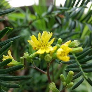 ベランダは千客万来 イチイの鉢から 咲いたのは オニタビラコ 鬼田平子って書くらしい❗️ 検索したら道端や空地で自生する雑草とか 可愛い花だから抜かない✌️
