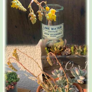 プレリンゼ♡ 花芽がシャンシャン上がってました😊 1つの体から4本も花芽出して💦この写真では見えないけどあと1つ小さな花芽が出てきてます💦 花芽に力使いすぎて、体力消耗しそうなので、✂️して飾りました💕 ✂️して差しておくだけでもお花が咲くことをGSの先輩から教えていただいたので😊 4本のうちまだ短い花芽は残し、キセスの花芽も✂️し一緒に小瓶に差しました🎶