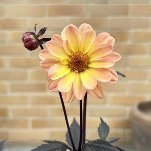 プチダリア “ハミングブロンズ サイレンティア“ 今年は咲かないと思っていましたが、可愛いお顔を見せてくれまし た。 黄色ベースに薄いピンクが入って清楚な雰囲気❤︎