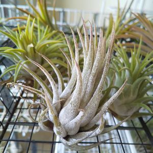 おはようごじゃいますʕ•ᴥ•ʔ✨ 先週末、やることないんでネットでチラ色々狩ってしまった( ゚ω゚)チーン という訳で少しずつご紹介 Tillandsia 'Tina Parr’さん T.selerianaとT.ionanthaの交配種です🙌 前見かけて気になってたんですが高かったんですよねぇ(´д`) でももう花が終わった後だからですかね、安く買えました( ̄∇ ̄) 子株期待での購入です😁 因みに手持ちのコルクでうまくハンギングできなかったので、一旦ハンギング諦めましたʕ•ᴥ•ʔ