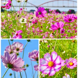 吹上コスモス畑.。.:*♡ 鴻巣市荒川河川敷にある首都圏最大級のコスモス畑には1000万本のコスモスが咲き誇っています🌸🌸🌸🌸🌸🌸🌸🌸🌸🌸 センセーション、ピコティ、キャンパスイエロー、ブライトライト混合、シーシェルと種類も豊富。 河川敷に広がる花畑はめちゃくちゃ可愛い💕💕💕 picは一般的に見られるセンセーションという種類のコスモス🌸