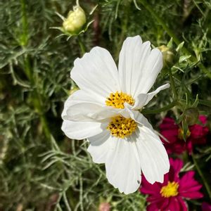 コスモスは陽だまりが照り輝き とても綺麗です💗💛🤍 前向きの姿、後ろ姿もモデルのように見られて〜とても素敵でした♡