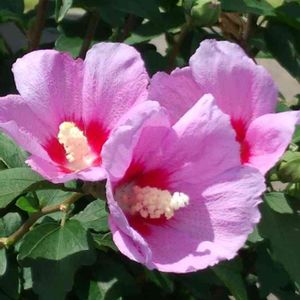 ムクゲ 2年前、垣根の近くに植えてられていたムクゲが歩道工事の留守中に掘られてなくなっていた。 工事の人に頼んで根っこが痛々しい状態のまま機械で穴を掘って埋めてもらった。 今年は去年より花付きがいいように思います。ガンバッタネ👏