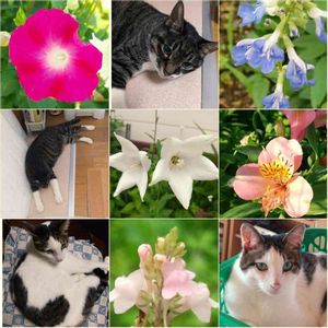 ニャンニャン祭りに参加させてください。 うちの😸ズと庭で頑張ってる花🌼🌿