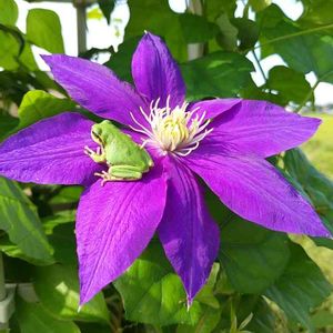 朝からクレマチスにお客様🐸 💜💜💜