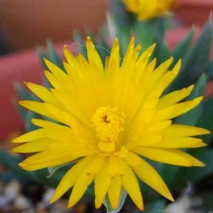 細雪(デロスペルマ属) 朝、ホースをシャワー用にして上から水をジャーッとかけていたら、咲いてるのを発見! いつも咲き終わったしぼんだのしか見てなかった。 嬉しい!ルンルン😍🎶