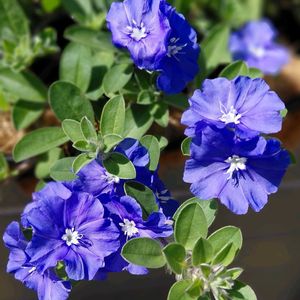 エボルブルス🌱🌱別名 アメリカンブルー 庭花 🟦青が美しい🤩 1日降った雨後の陽射しが青を引き立てる😘😘