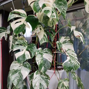 モンステラホワイトタイガー。 新葉おしいなぁ。もう少しでフルムーンやったけど✨だけど元気に成長中が何より😁