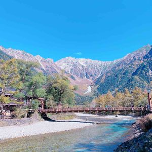 上高地到到着🗻 雄大な景色‼️ 澄み切った川💙 「河童橋」を背景にジャンダルムを 見上げる