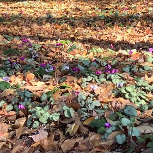 林の中に植えられた 「シクラメンの原種」 どう見てもただのミニシクラメンにしか見えないんだけど笑