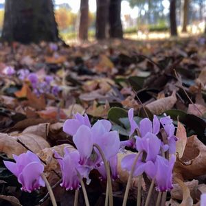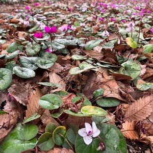 原種のシクラメン 暖かい落ち葉に守られて 元気に咲いてます♪