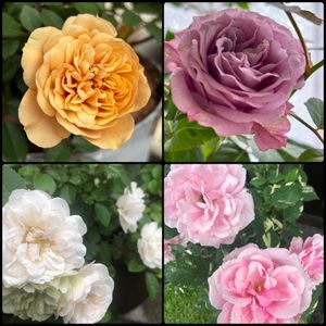 おはようございます😃 薄い雲はありますが良いお天気です☀️ 今日も良い一日を🌼 今朝のバラ🌹たち✨ ①マダム アルフレッドドゥルージュモン✨ 優しい色でたくさん開きました ②ジョアシンアネ✨ 小さめな可愛い色のバラです ③カージナルフム✨ 魅力的な赤色。葉っぱも赤味帯びてます ④ブルームーンストーン✨ 開ききるとブルーを帯びます🩵 ⑤ヘルシューレンは満開〜🩷 今年は色が濃いめね