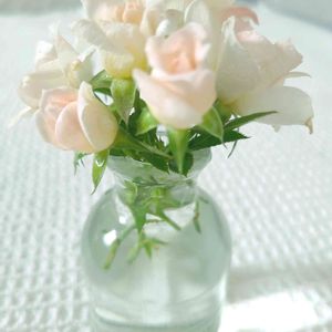 ミニバラちゃん♡( •ॢ◡-ॢ)✧˖° ♡ 秋に沢山咲いてね🤍♪*゚と 剪定して飾りました😊 ちっちゃくて可愛い❤︎.*
