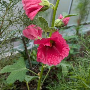 タチアオイ 花言葉 穏やかさ 雨に打たれながらも 静かに咲き出しました🌸✨