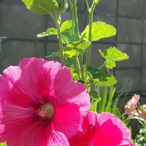 今日のお花🌸 タチアオイ🩷 ピンクの八重咲きが可愛い🩷