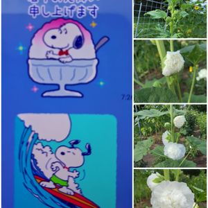 こんにちは😊 庭のタチアオイと一緒に… 🏷毎月2日は、スヌーピーの日に参加いたします🙌🎶 🏷白い水曜日♡ 🏷タチアオイ まだまだ暑い日が続き、沖縄では台風の進路も気になりますね🥵💦 皆様、お気をつけてー💦