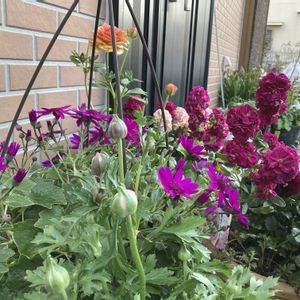 玄関前のお花達 昨日は1日で37鉢植え替え クレマチス、紫陽花、ミニ薔薇など 筋肉痛? 体がおかしい…