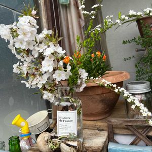 庭の剪定して、いけてみました よく日が当たるので、すぎに咲きそうです
