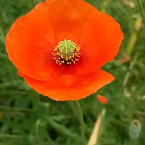 花友さんの花壇 2 1️⃣2️⃣3️⃣ナガミヒナゲシ 今朝はお天気は下り坂で今にも雨が降りそうです 用事を済ませた後に花友さんの花壇に立ち寄ったら、ひなげしが咲いていました。 ビタミンカラーで元気もらおう。