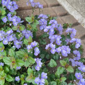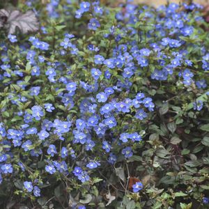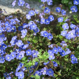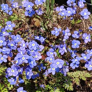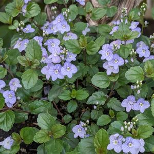 ベロニカオックスフォードブルー はじまりは2ポットの苗から、せっせと挿し芽しては地面に移し、数年で2m 四方まで広がりました。花がない時期も🌿がキレイなので大好きなグランドカバー。
