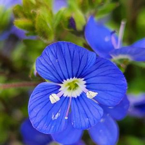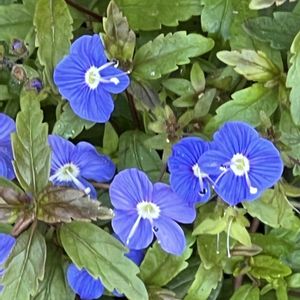 ベロニカ・オックスフォードブルー 別名:ベロニカ・ジョウジアブルー 濃い青紫色にピンとした蕊が可愛い。 2025.4.5 散歩で ゴマノハグサ科 宿根草 冬は銅葉が美しい。 匍匐性のベロニカ グランドカバーに。 ヨーロッパ原産 開花期: 5〜6月