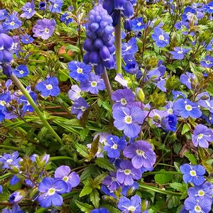 おはようございます😊 🏷️春爛漫の青い花2025 🏷️青い小さな花を写そう!2025 🏷️美しく青きドヨウ ベロニカの絨毯からムスカリが出てきました🤭
