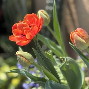 チューリップ "フォクシーフォックス・トロット"咲きました🤗✨ 元気カラーのオレンジでパワーを感じます٩( 'ω' )و ٩( 'ω' )و 今日も一日頑張れる😊.•♬
