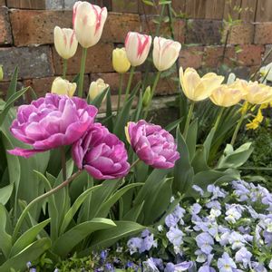 花壇が満開に💖後ろの塀造りはまだまだ途中にも関わらず剥がれてる所あるし😅