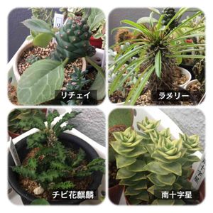 おはようございます😃 涼しい朝 秋ですね〜❗️🤗 モナデニウム属 ⭐️リチェイ(196) Monadenium ritchiei❗️ 頭のあたりからも 枝分かれ、だんだんに形が変わって来た❗️🥰 パキポディウム属 ⭐️ラメリー(258) Pachypodium lamerei❗️ ダイソー多肉ちゃんには 見えません❗️😅 葉っぱも沢山増えて元気そうです〜❗️🥰 ユーフォルビア属 (313)ちび花麒麟 Euphorbia decaryi var spirosticha❗️ 葉の縮れた花麒麟ちゃん❗️🥰 どんな花が咲くのか🌸楽しみです〜❗️🤗 クラッスラ属 (314)南十字星(みなみじゅうじせい) Crassule perforate f.variegata❗️ 星の王子さまの斑入り種、王子さまみたいに沢山増やしたいです〜❗️🥰