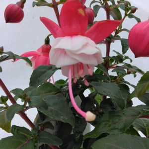 こんにちは☁ 🌿フクシア🌿 ご近所の花好きさんから電話を貰い、花を見に行って来ました🥰 素敵✨💕 雪の上から、雪をバックに🤳カシャカシ