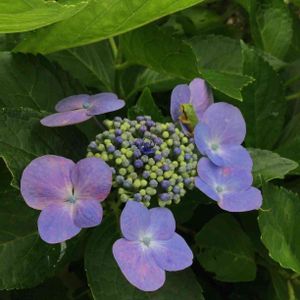 🌳木の花たち その40 ガクアジサイ(額紫陽花) 第二弾。 こちらは淡いブルーです♬ ピンク色のアジサイとは微妙に花弁の形が違っているように見えます。 以前にpostした、白いガクアジサイとも 微妙に花弁が違っていて、三者三様です。 mako(#^.^#)さん主催 🏷星屑ファンタジー に参加します♡ ⛅️ *・゜゚・*:.。..。.:*・'⛲️'・*:.。. 🌳.。.:🍃*・゜゚・*