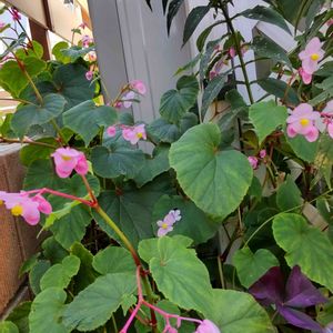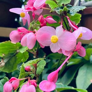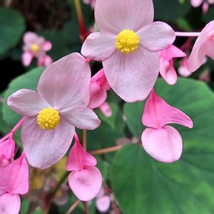 お庭の奥の方で咲いてる『秋海棠』咲き始めました🌸 お花の先端の黄色🟡 可愛いです😆 耐寒性が強く日陰でも育ちます。
