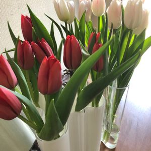 今週の八百屋チューリップはおめでたい紅白😚 家の中でも外でもチューリップを楽しめる嬉しい季節です。